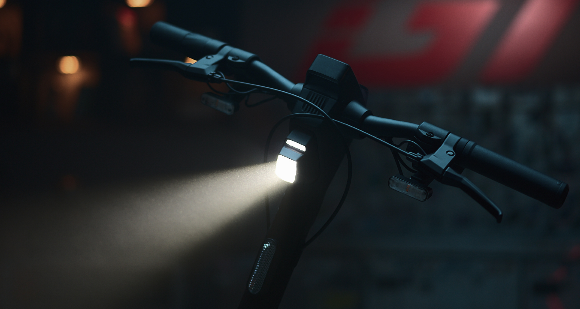 La GT3 E est équipée d’un éclairage LED puissant pour une visibilité maximale. Le phare avant fournit jusqu’à 1300 lumens et peut passer automatiquement entre feux de croisement et feux de route. Les feux de route peuvent éclairer jusqu’à environ 75 mètres. La trottinette dispose également de clignotants à l’avant et à l’arrière ainsi que de feux de freinage bien visibles.