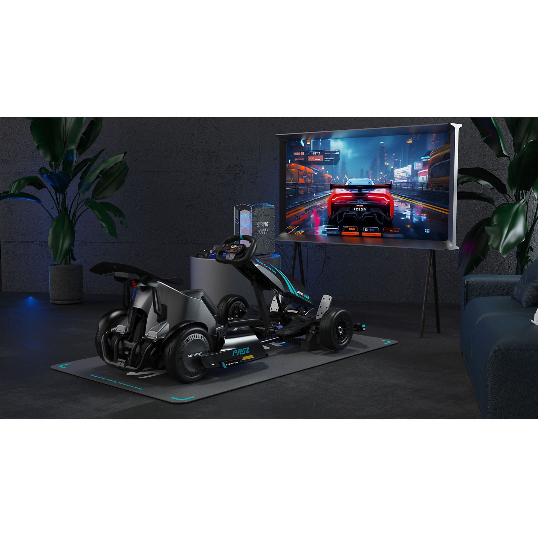 En plus de rouler à l’extérieur, la Segway GoKart Pro 2 peut être connectée sans fil à un ordinateur ou à une console de jeu*. Le kart peut ainsi être utilisé comme simulateur de course, offrant une expérience interactive supplémentaire. Le kart fonctionne alors comme une manette : le volant sert à diriger et les pédales d’accélérateur et de frein contrôlent les actions dans le jeu. Grâce au retour haptique intégré, vous ressentez également des vibrations qui réagissent aux événements du jeu.
