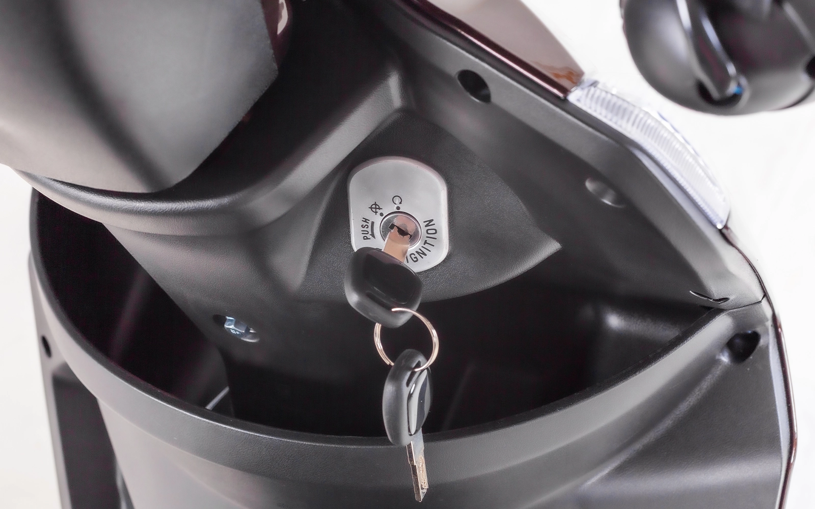 Onder het zadel bevindt zich een 60 V 20 Ah lithium-ion batterij, goed voor een rijbereik van ongeveer 40 tot 60 kilometer.