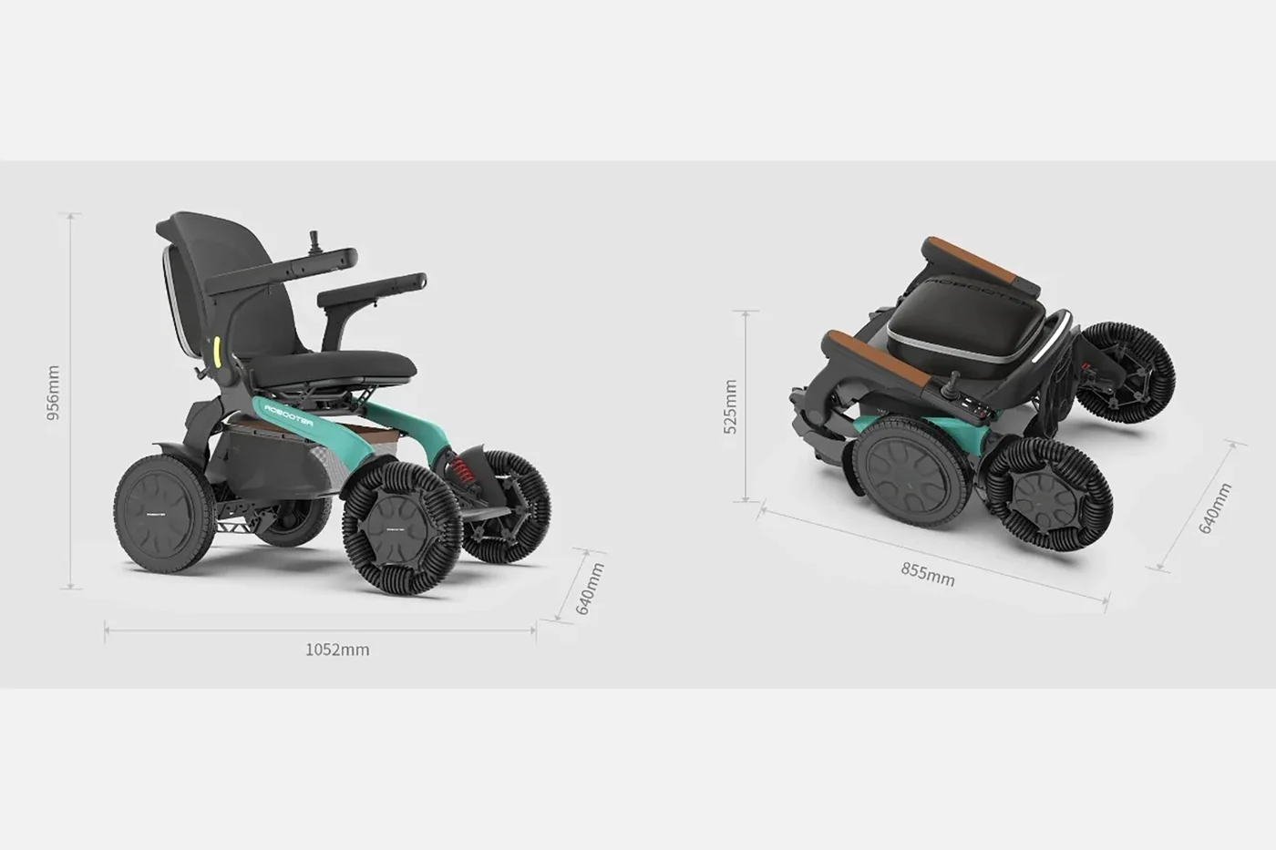 De afmetingen van 105,2 cm lang, 64 cm breed en 95,6 cm hoog zorgen ervoor dat de rolstoel compact genoeg is voor binnenshuis, maar ruim en stabiel genoeg voor ritten buitenshuis.