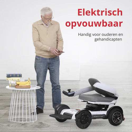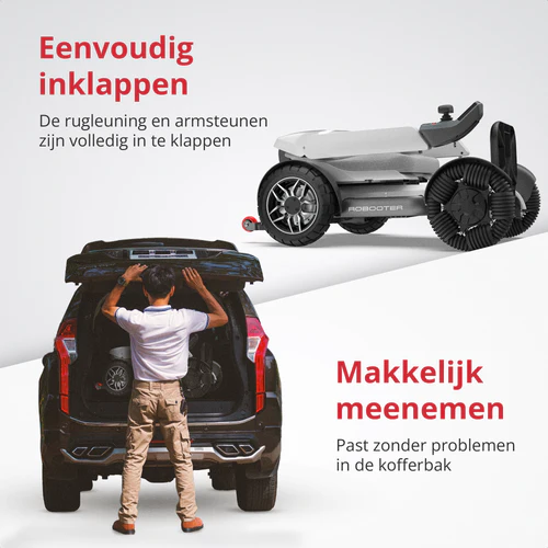 De Robooter X40 tilt gebruiksgemak naar een hoger niveau. Je kunt hem volledig elektrisch opvouwen, met een druk op de knop of zelfs rechtstreeks via de app. Hierdoor hoef je geen fysieke kracht te gebruiken, en kun je de rolstoel moeiteloos meenemen in de auto, op reis of eenvoudig opbergen wanneer je hem niet nodig hebt.