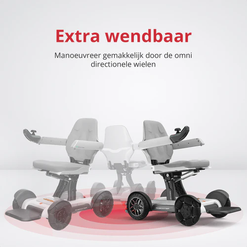 Een rolstoel die extreem wendbaar is en zonder moeite door krappe ruimtes navigeert. Ideaal voor binnenshuis gebruik, drukke omgevingen of ruimtes waar gewone elektrische rolstoelen vaak te log zijn.