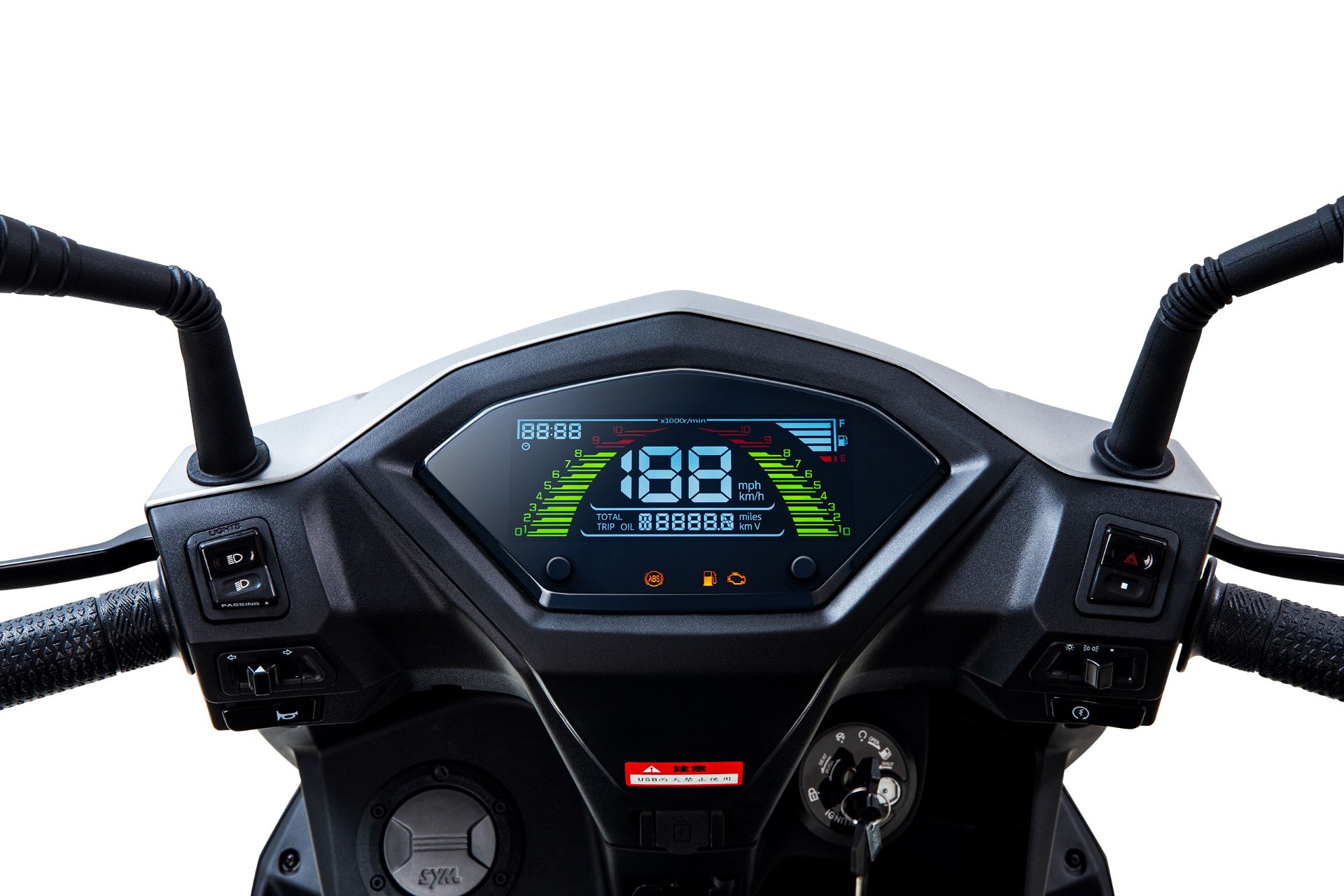 Het design is geïnspireerd op het Chinese kalligrafische Running Script, een schrijfstijl die bekendstaat om zijn vloeiende en continue beweging. Die inspiratie zie je duidelijk terug in de vormgeving, waar strakke lijnen en zachte overgangen elkaar mooi aanvullen. Het resultaat is een moderne en dynamische uitstraling die opvalt zonder schreeuwerig te zijn. Alles oogt verzorgd en in balans, waardoor de scooter perfect past in het hedendaagse straatbeeld.